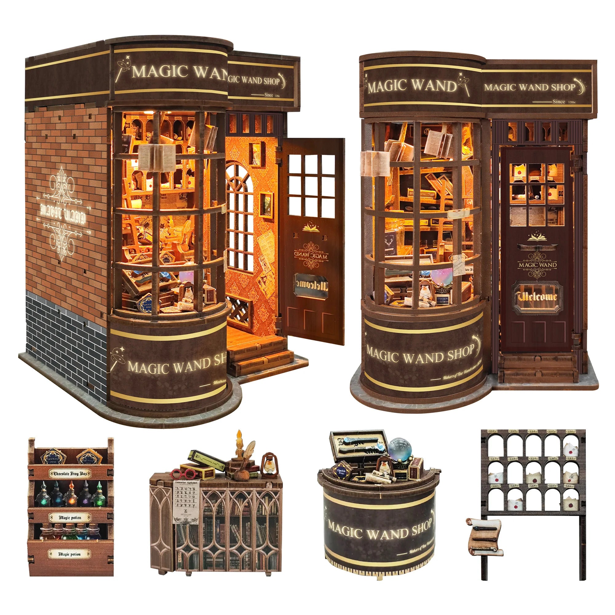 Bring the magic of your favorite wizarding world to life with this DIY Wooden Book Nook Kit — a glowing miniature fantasy bookshop with a magic wand theme, perfect for bookshelves and Harry Potter birthday gifts!
